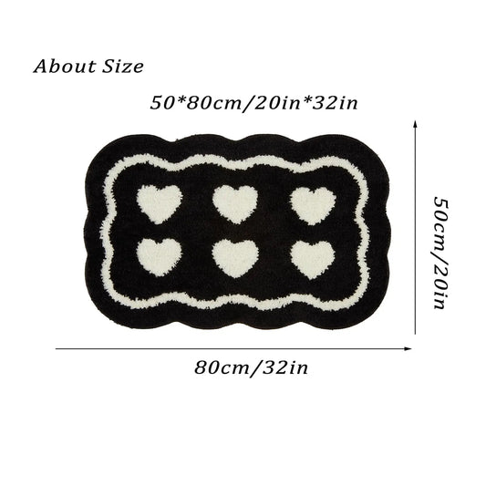 Bathroom Modern Rugs Non-Slip Black with White Mats Funny Heart Design Washable Bath Rugs Microfiber 욕실 소품 세트 גומי למקלחת רצפה